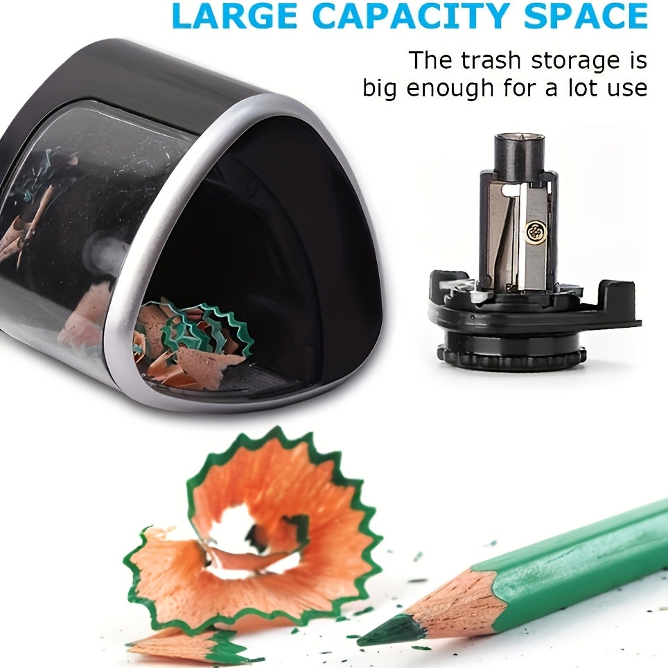 Această ascuțitoare electrică automată asigură o ascuțire rapidă și precisă în doar câteva secunde, oprindu-se automat atunci când creionul este ascuțit complet. Designul său inteligent previne ruperea minei și oferă o experiență sigură și eficientă, perfectă pentru birou, școală sau acasă.