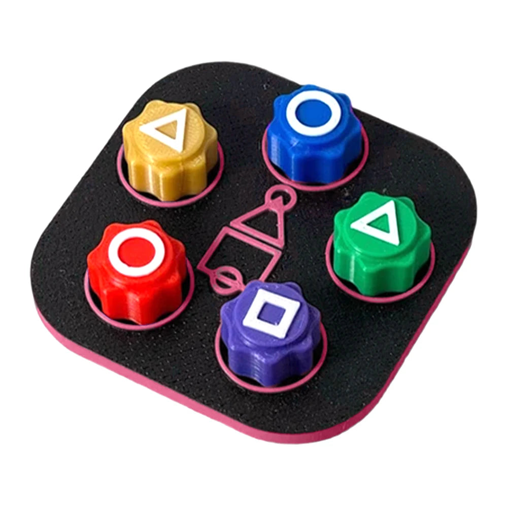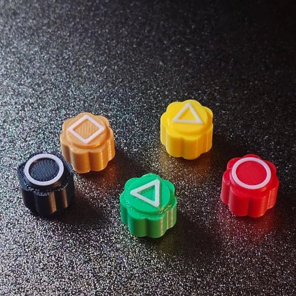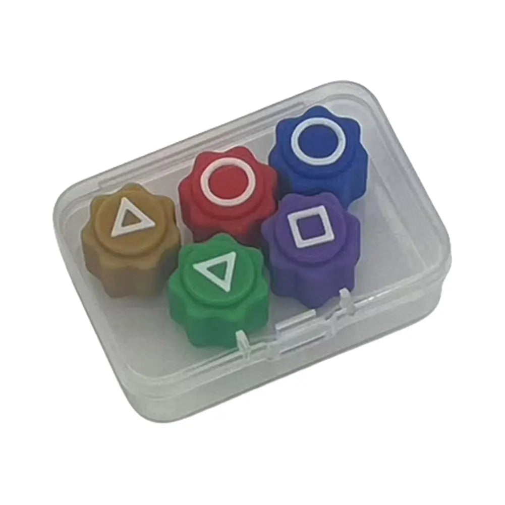 Număr de piese: 5 pietre colorate, fiecare având un simbol distinct: