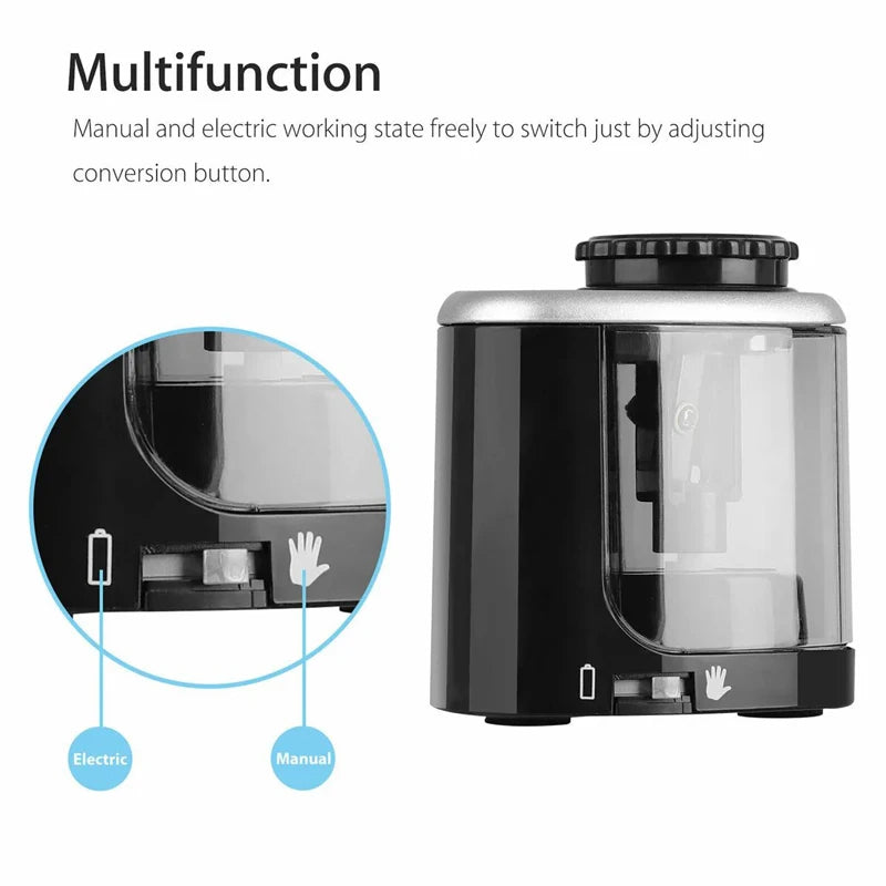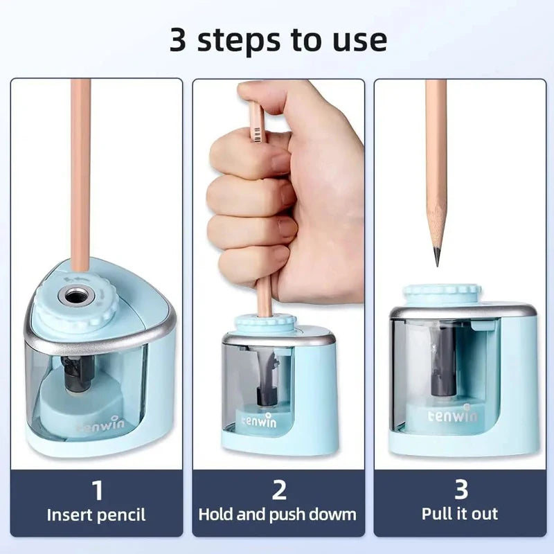 Ascuțitoare electrică cu lamă elicoidală din oțel asigură o ascuțire rapidă, precisă și durabilă. Potrivită atât pentru creioane clasice, cât și pentru creioane colorate, este alegerea perfectă pentru copii și adulți.