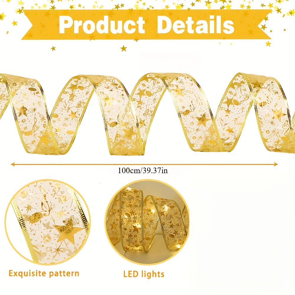 Această bandă luminoasă decorativă cu LED-uri adaugă o notă elegantă și festivă oricărui decor de sărbători. Realizată într-un design ondulat auriu/argintiu strălucitor si funcționează cu baterii, ceea ce o face ușor de amplasat oriunde — fără cabluri sau prize.